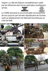Depuis hier nuit, en prévision de son déplacement pour Bamako, Colonel Mamadi Doumbouya a procédé à un important déploiement de troupes militaires sur différents points stratégiques de la capitale guinéenne. Sur les réseaux sociaux, le message ci-dessous est largement diffusé.