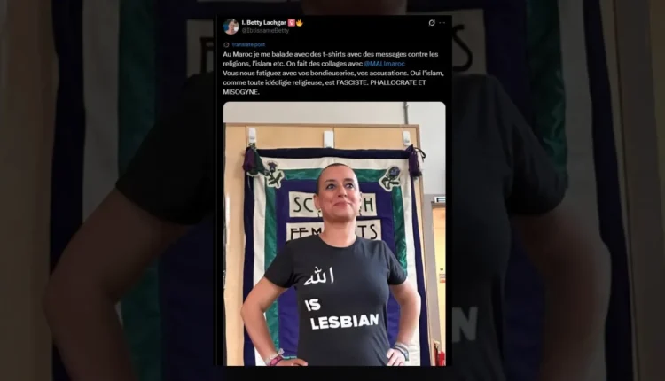 Psychologue clinicienne, Ibtissame « Betty » Lachgar, militante de 50 ans connue pour son engagement en faveur des libertés individuelles, a publié fin juillet une photo d’elle vêtue d’un t-shirt où apparaissait le mot « Allah » (« Dieu ») suivi de la phrase « is lesbian » (« est lesbienne »).