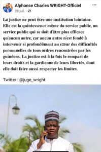 Sans le citer, Alphons Charles Wright, devenu Ministre de la Justice en Guinée, reprend, mot pour mot, le texte de l’ancien président français, en ne remplaçant que « Français par guinéens« , souligne un observateur,
