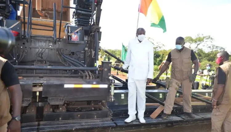 Image de la UNE: l‘ex président, Professeur Alpha Condé en visite sur le chantier de bitumage du tronçon Kindia-Mamaou.